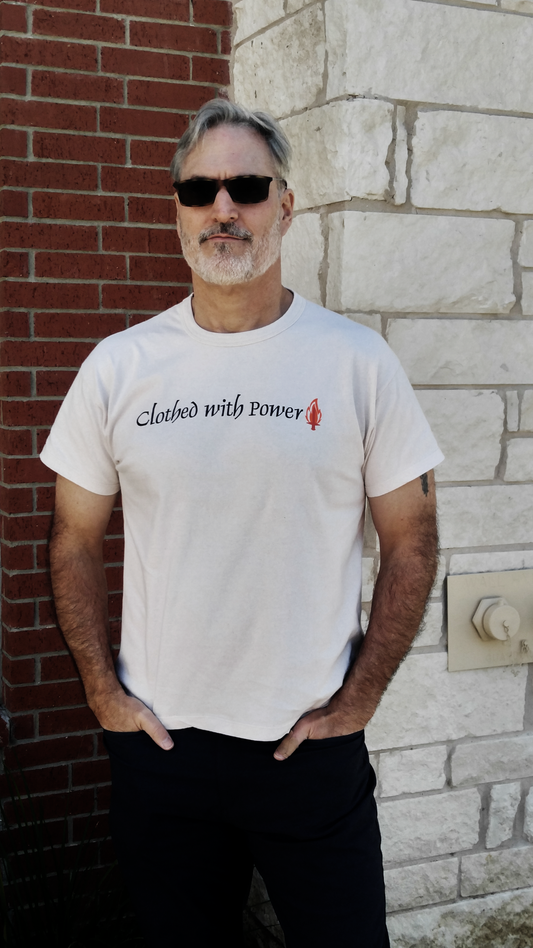 Explore "Clothed with Power" Christian T-Shirts, proudly made in the USA from organic cotton grown in Texas. Live a life loved "Clothed with Power" seeking His presence worshipping Him in Spirit and in Truth. Speak His word only and give thanks to the Father in the name of Jesus! His eyes are upon those that worship and revere Him in awe, and His ears hear their voice. Join us on a journey of spiritual growth in Him living a life "Clothed with Power."